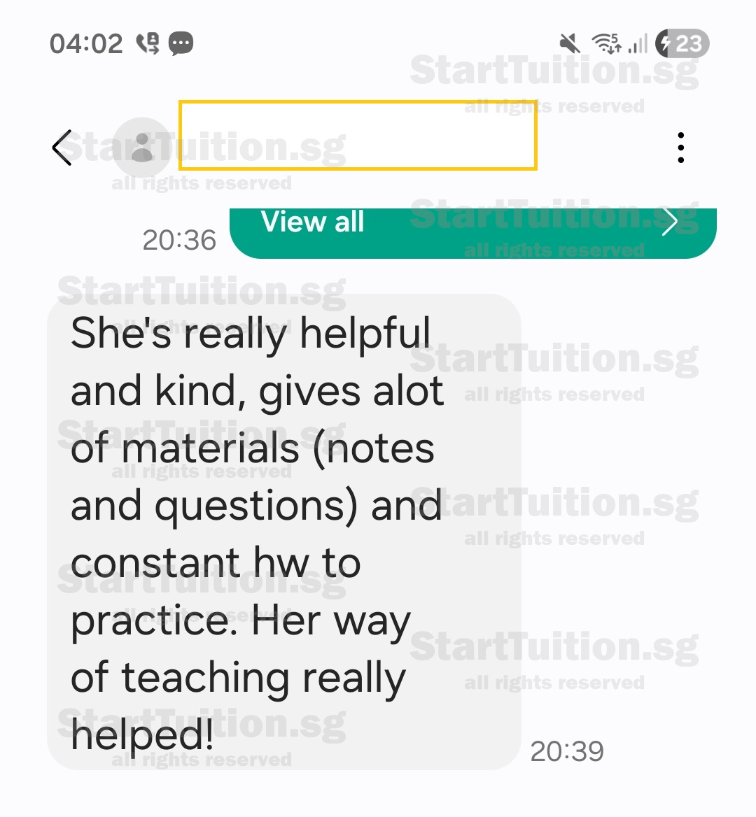 About 20 years private tutoring experience for Primary school English Chinese Maths Science.
